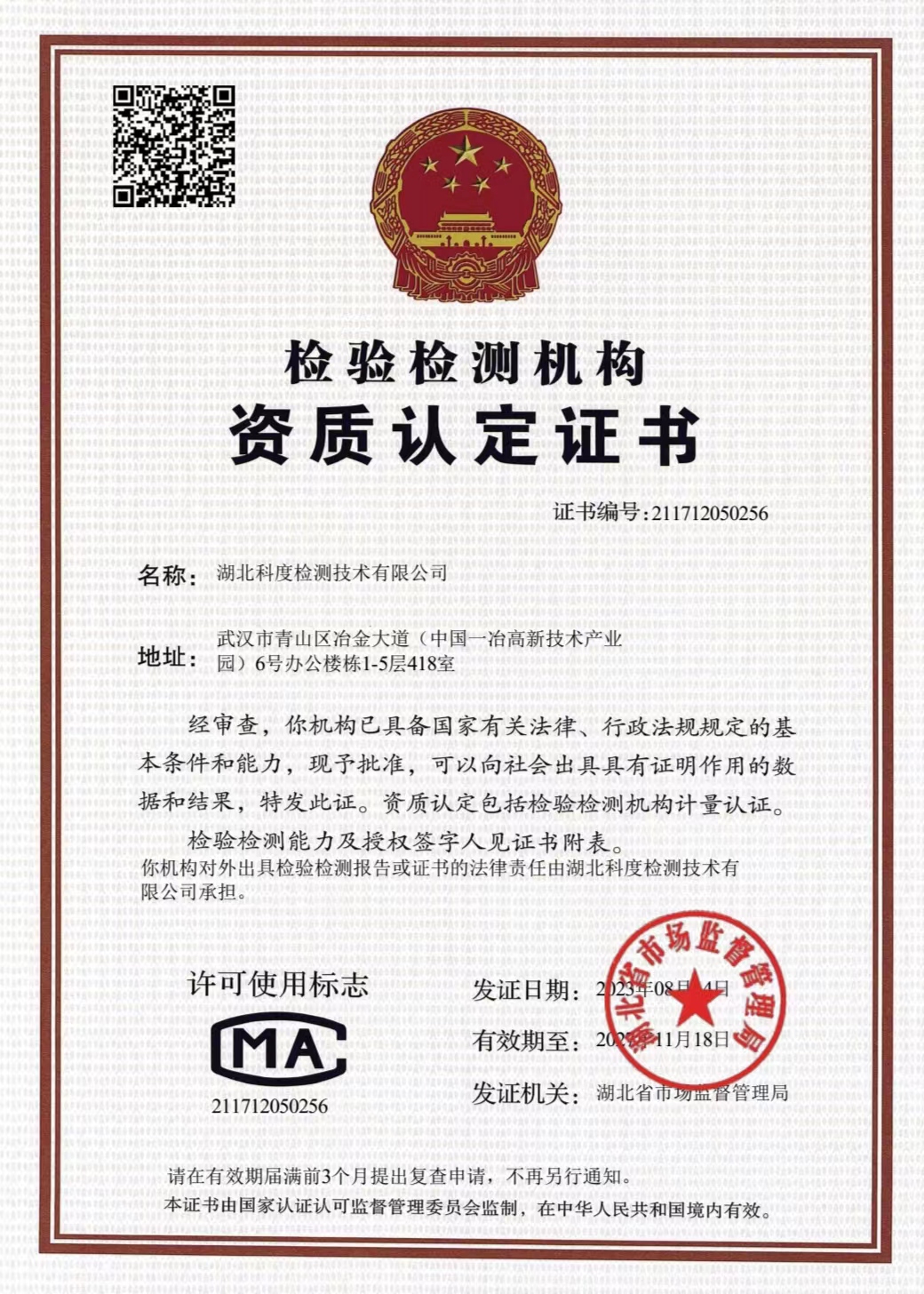 湖北科度檢測技術(shù)有限公司是一家專業(yè)從事環(huán)境類及相關(guān)領(lǐng)域檢測的第三方檢測機構(gòu),公司已通過湖北省市場監(jiān)督管理局CMA計量認證,可以面向社會出具權(quán)威CMA檢測報告。 我公司實驗室嚴(yán)格按照國家標(biāo)準(zhǔn)建設(shè),擁有一大批國內(nèi)外先進儀器設(shè)備及現(xiàn)代化配套設(shè)施,并有經(jīng)驗豐富的中高級專業(yè)技術(shù)人員和嚴(yán)格的實驗室質(zhì)量保證體系為項目運作提供強力支撐。 作為第三方檢測機構(gòu),公司始終以高度的社會責(zé)任感經(jīng)營企業(yè),以“公正、嚴(yán)謹(jǐn)、高效”為宗旨,依托專業(yè)的技術(shù)實力為客戶提供專業(yè)優(yōu)質(zhì)檢測服務(wù),受到政府、企業(yè)和社會各界的廣泛關(guān)注和認可。